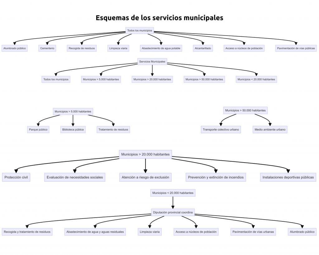 Aquí tienes un resumen esquemático de los servicios municipales según el tamaño de la población: