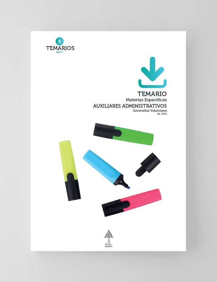 Temario del Cuerpo Auxiliar de la Administración, Escala Auxiliar de Gestión, de la Generalitat Valenciana. Materias Específicas (573 págs.) Ed. julio 2023.