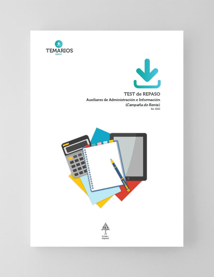 Colección de 806 preguntas tipo test de repaso en PDF sobre los 12 temas del Temario de Auxiliares de Administración e Información (Campaña de Renta) 2022. Agencia Estatal de Administración Tributaria AEAT. 220 págs. Ed. septiembre 2022. Incluye los exámenes oficiales de la convocatoria 2020, con sus respuestas correctas.