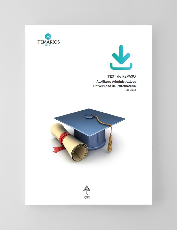Colección de Test en PDF de Repaso del Temario de Auxiliares Administrativos de la Universidad de Extremadura (UEX). 299 páginas, Ed. marzo 2023.